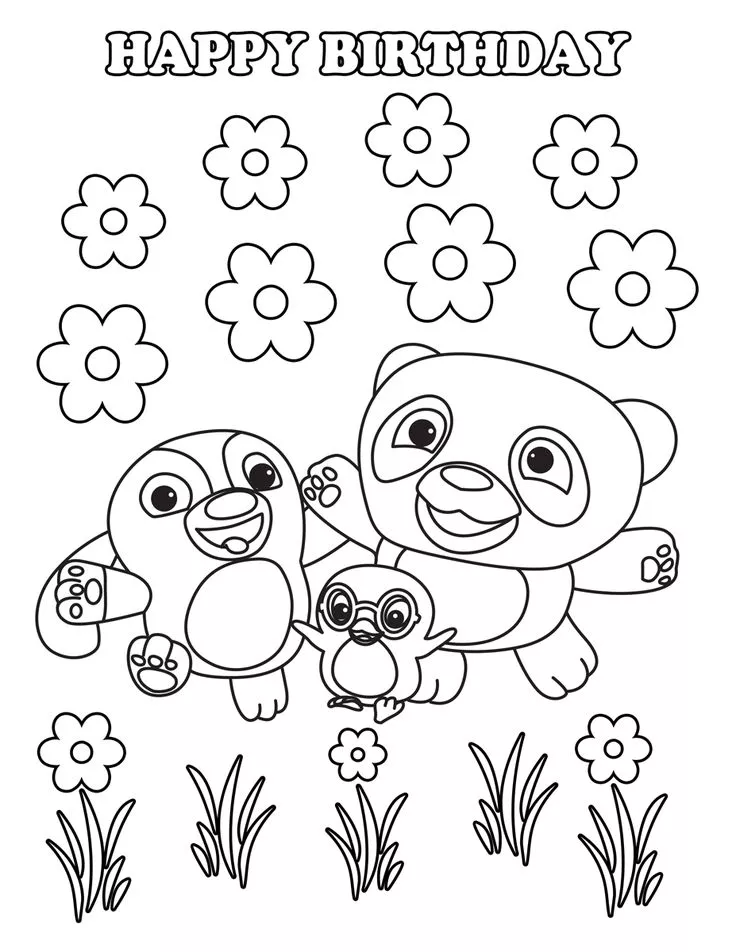 Beschreibung der Färbung : Druckbar herunterladen Alles Gute zum Geburtstag Ruff Ruff, Tweet und Dave Malvorlage