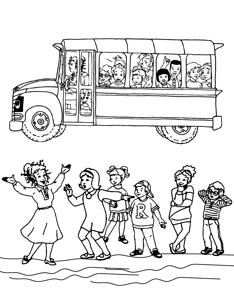 : Druckbar herunterladen Magischer Schulbus Menschlicher Körper Malvorlage