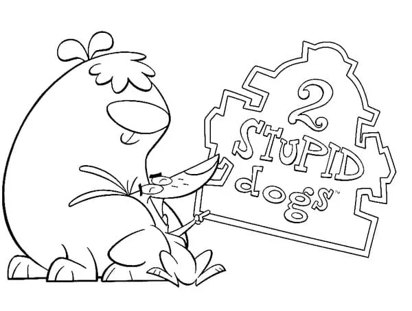 : Druckbar herunterladen 2 Dumme Hunde Karikatur Malvorlage