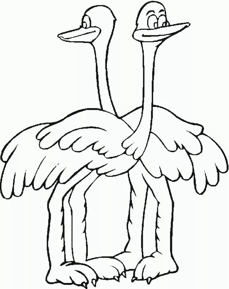 : Druckbar herunterladen Two Ostriches Malvorlage