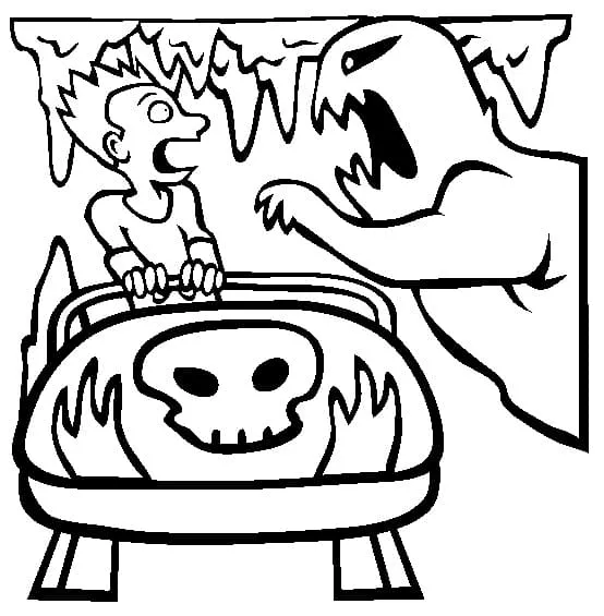 : Druckbar herunterladen Gruselige Achterbahn Malvorlage