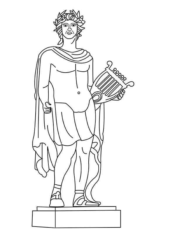 : Druckbar herunterladen Apollo mit Musikinstrument Malvorlage