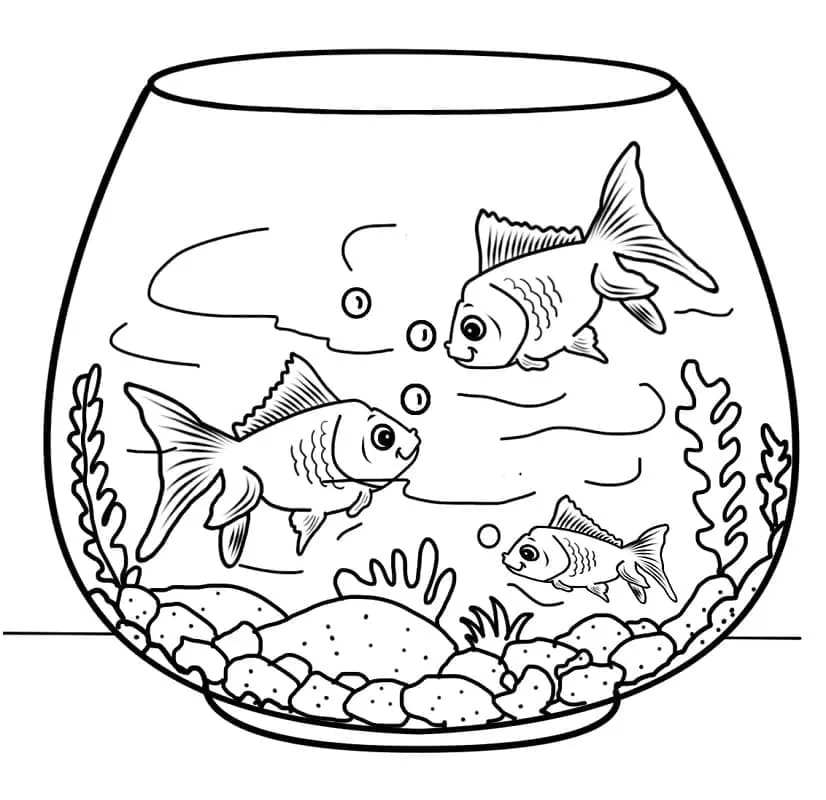 : Druckbar herunterladen Fische im Fischglas Malvorlage