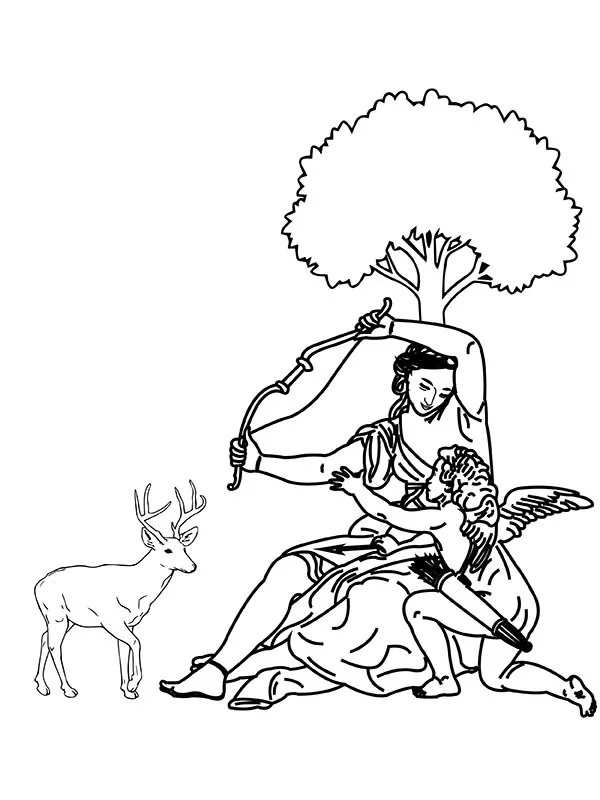 : Druckbar herunterladen Artemis und Amor Malvorlage