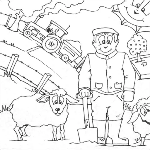 : Druckbar herunterladen Bauer und Schaf Malvorlage