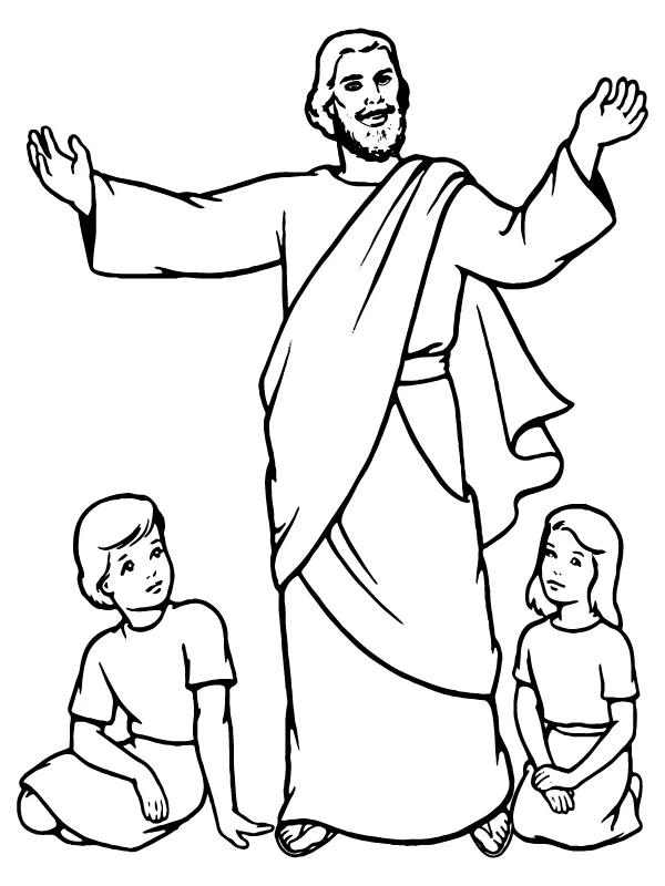 : Druckbar herunterladen Jesus und die Kinder Malvorlage