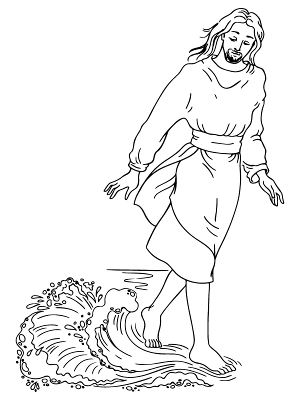 : Druckbar herunterladen Jesus geht auf dem Wasser Malvorlage