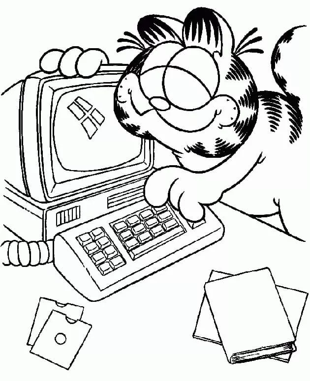 : Druckbar herunterladen Garfield mit Computer Malvorlage