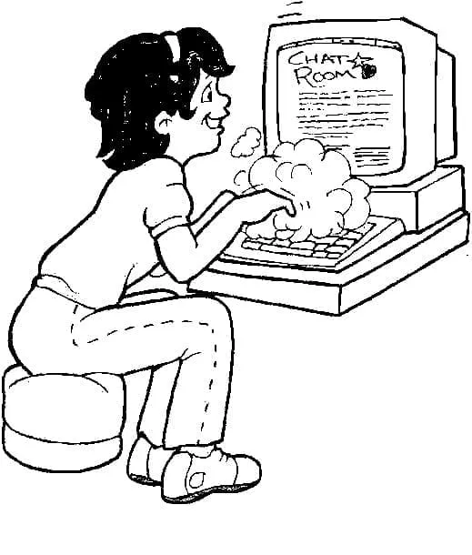 : Druckbar herunterladen Mädchen und Computer Malvorlage