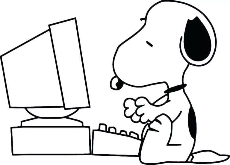 : Druckbar herunterladen Snoopy mit Computer Malvorlage