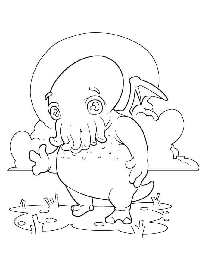 : Druckbar herunterladen Druckbarer süßer Cthulhu Malvorlage