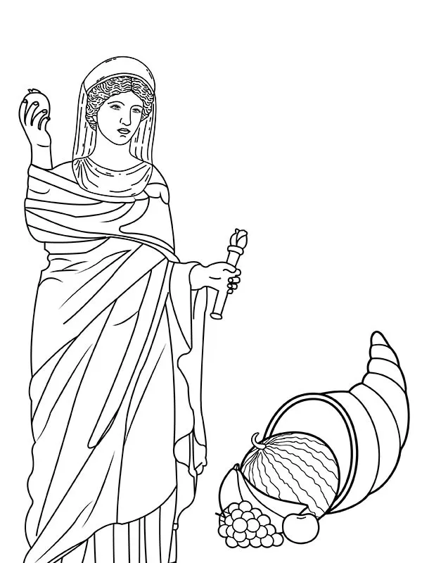 : Druckbar herunterladen Demeter und Früchte Malvorlage