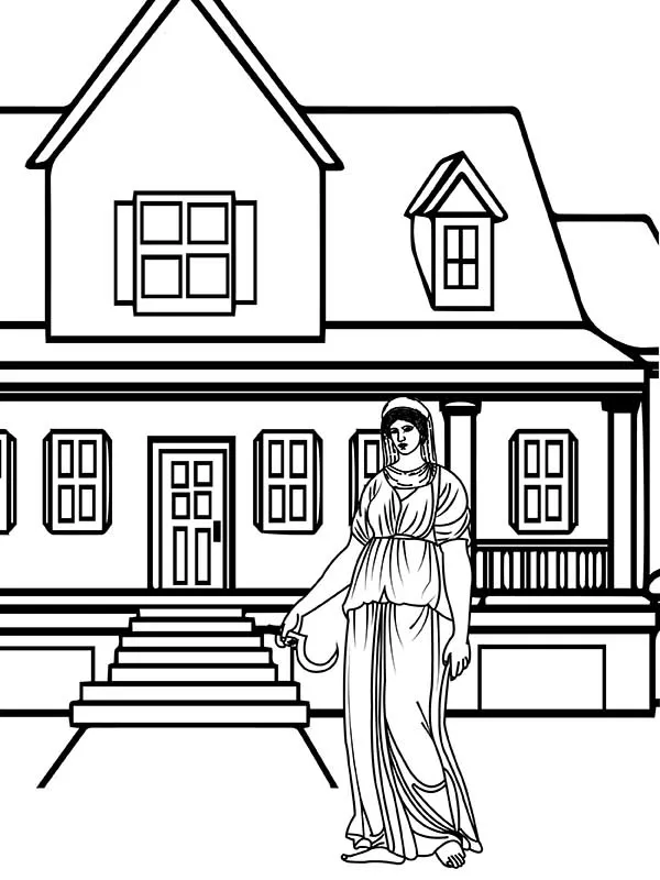 : Druckbar herunterladen Göttin Demeter und Haus Malvorlage