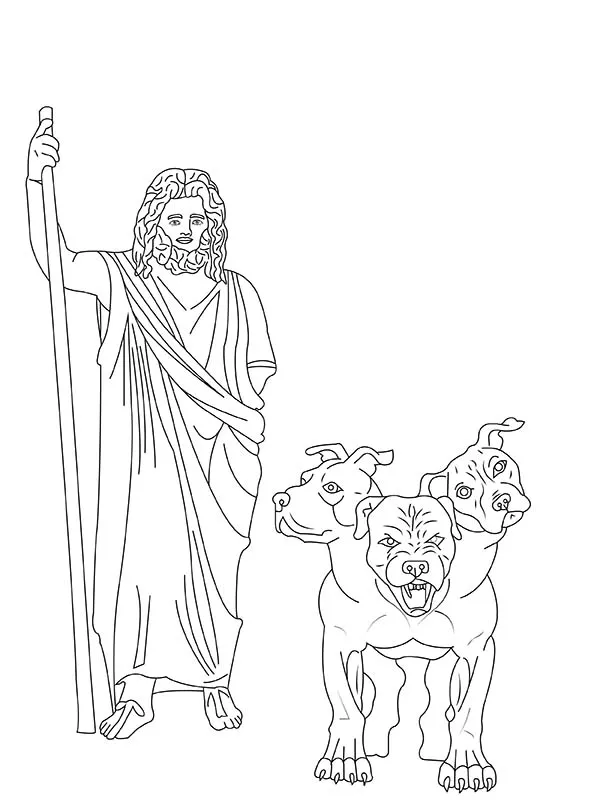 : Druckbar herunterladen Hades und der wütende Zerberus Malvorlage