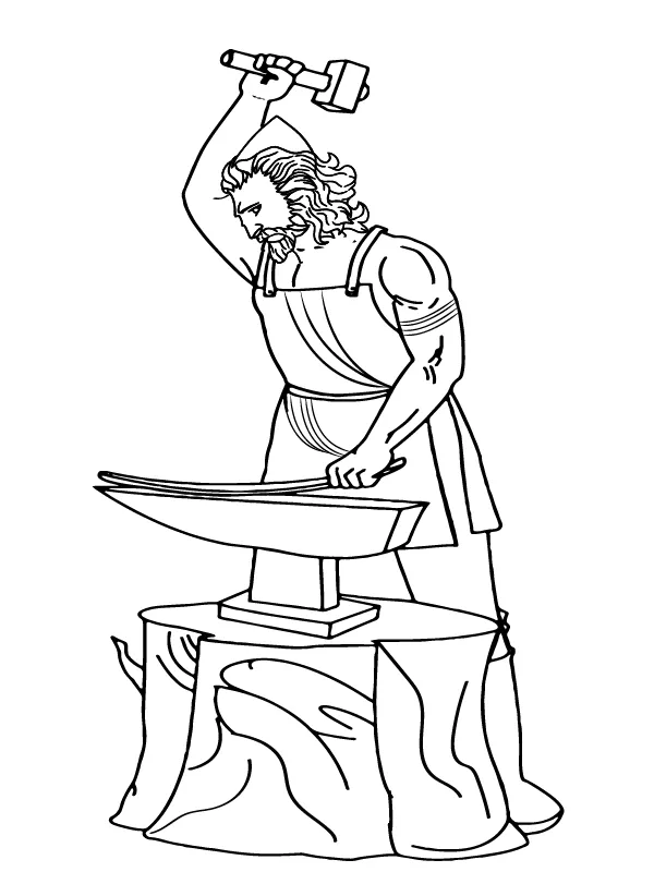 : Druckbar herunterladen Hephaistos schmiedet auf Amboss Malvorlage