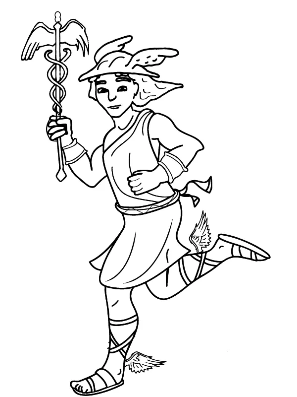 : Druckbar herunterladen Griechischer Gott Hermes Laufen Malvorlage