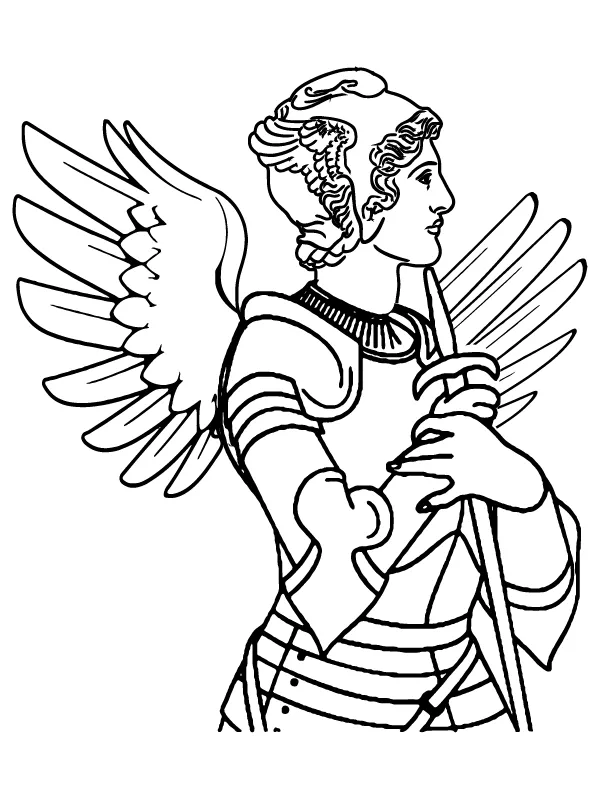 : Druckbar herunterladen Hermes mit kleinem Schwert in der Hand Malvorlage