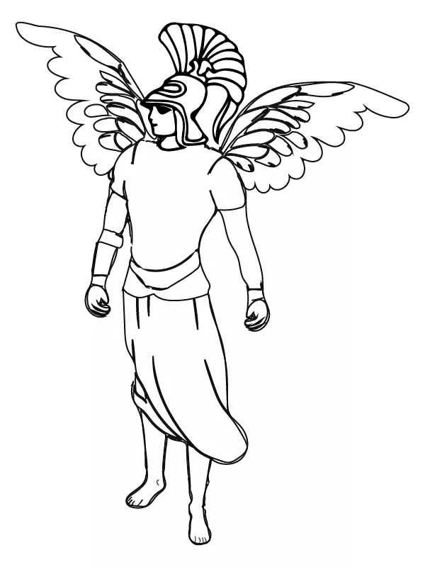 : Druckbar herunterladen Hermes Einfache Rüstung und Flügel Malvorlage