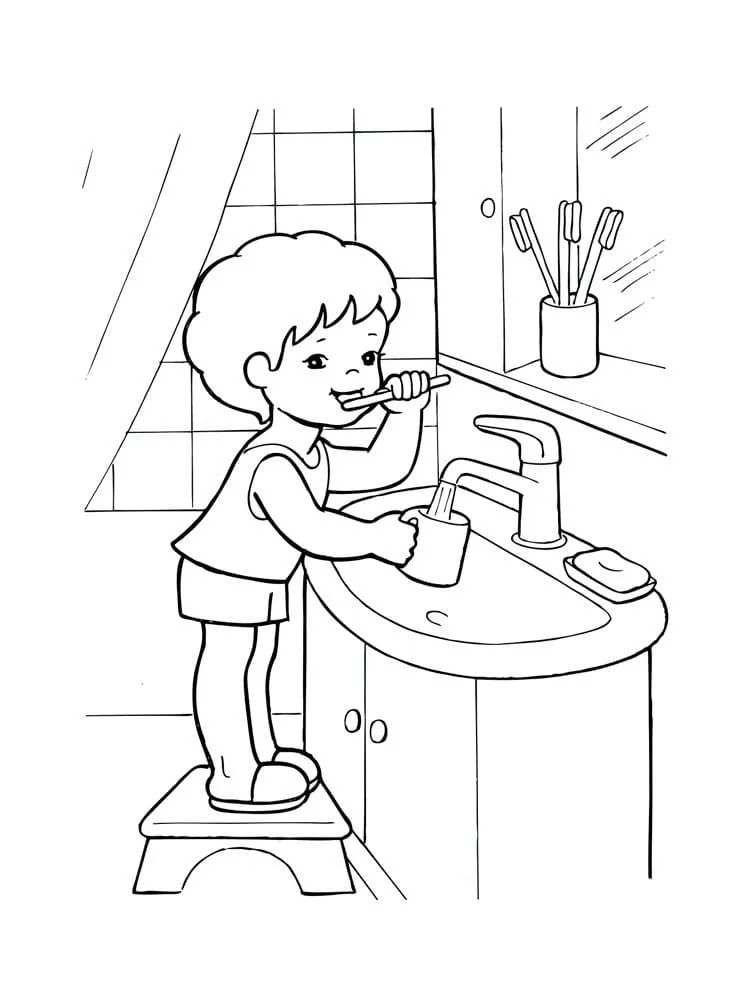 : Druckbar herunterladen Junge Zähneputzen Malvorlage