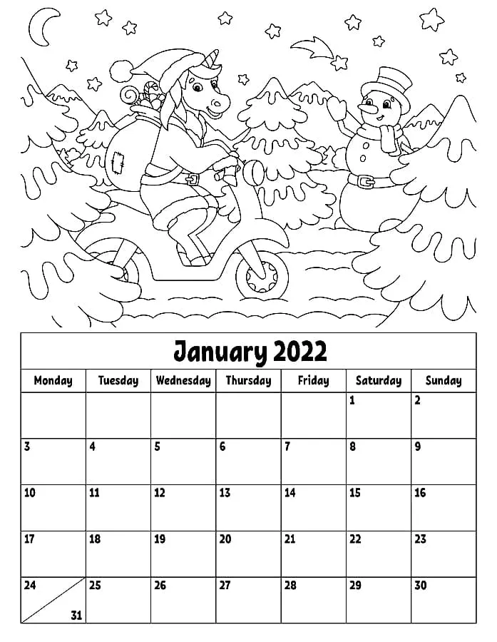 : Druckbar herunterladen Januar 2022 Kalender Malvorlage