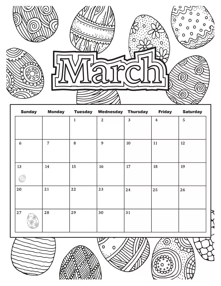 : Druckbar herunterladen März Osterkalender Malvorlage