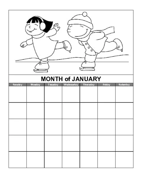 : Druckbar herunterladen Monat Januar Kalender Malvorlage