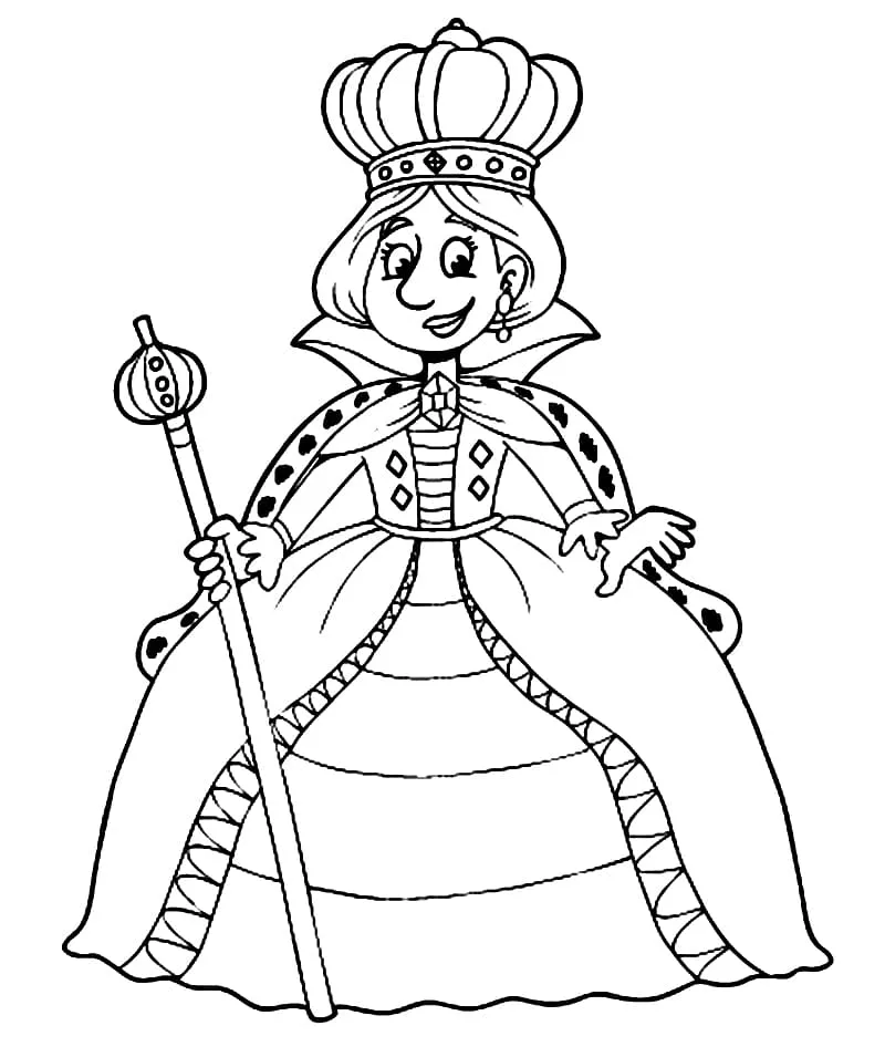 : Druckbar herunterladen Glückliche Königin Malvorlage