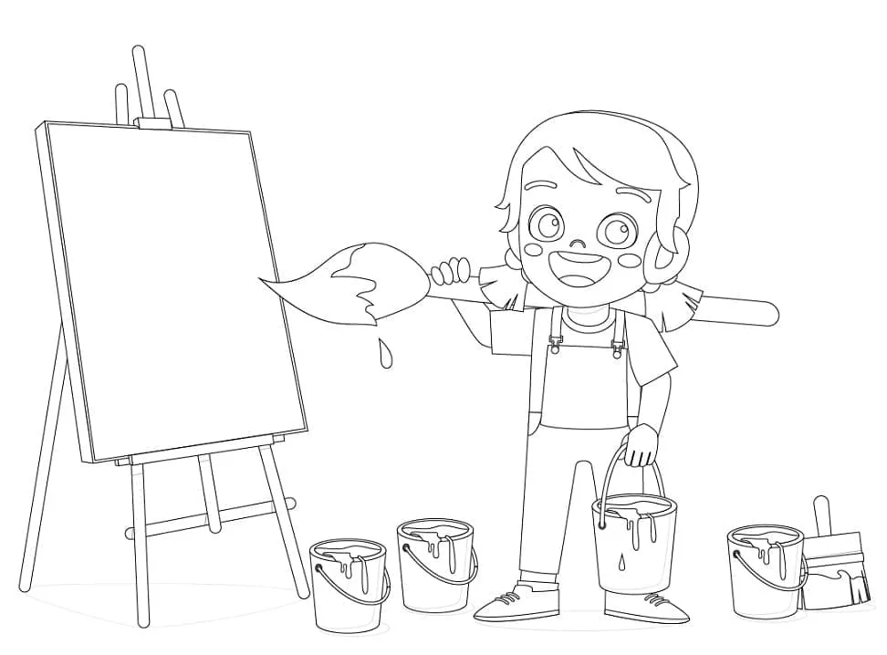 : Druckbar herunterladen Kleiner süßer Künstler Malvorlage