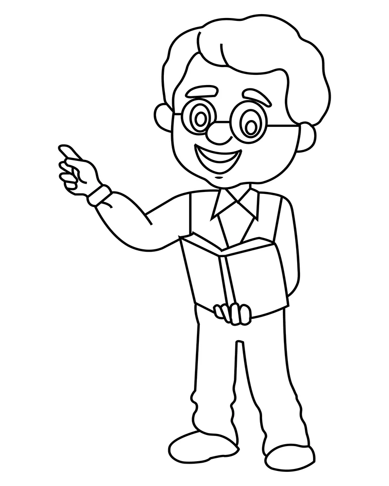 Beschreibung der Färbung : Druckbar herunterladen Leitender Lehrer unterrichtet Schüler im Klassenzimmer Malvorlage