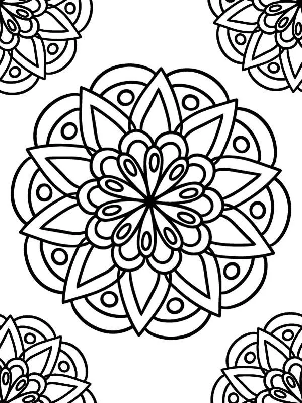 : Druckbar herunterladen Schwarzes Umriss-Blumenmandala Malvorlage