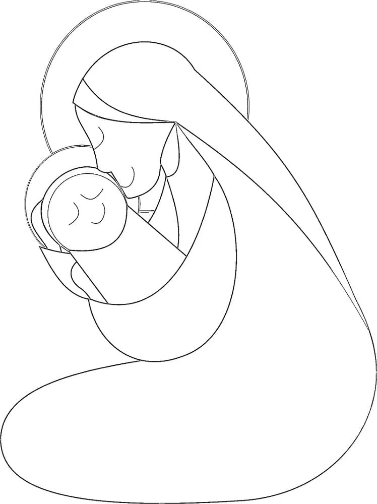 : Druckbar herunterladen Mutter Maria und Jesuskind Malvorlage
