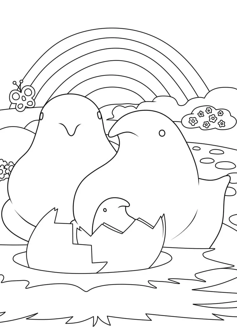 : Druckbar herunterladen Marshmallow Peeps Küken Familie Malvorlage