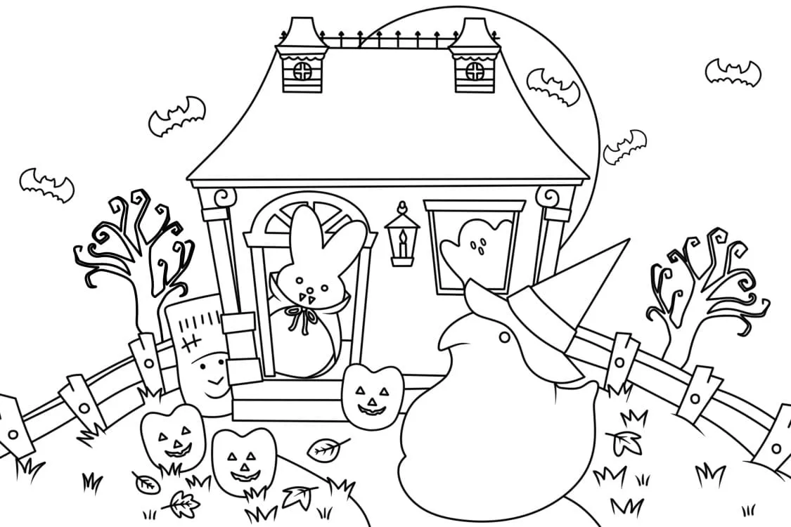: Druckbar herunterladen Marshmallow Peeps Halloween Malvorlage