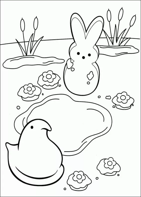 : Druckbar herunterladen Peeps Küken und Hasen Malvorlage