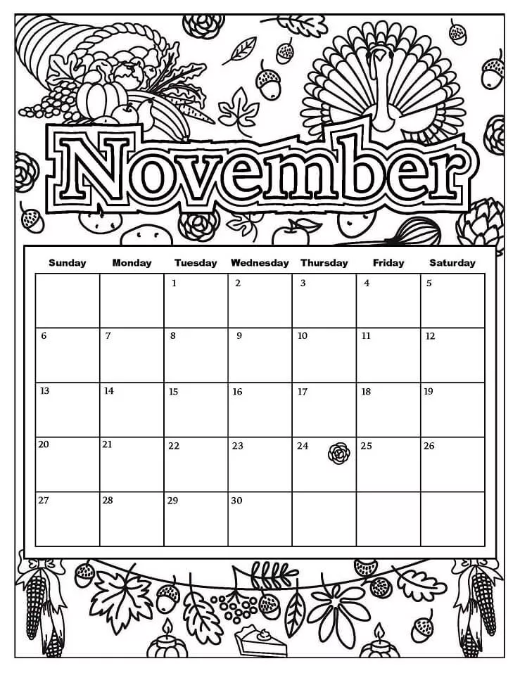 : Druckbar herunterladen Kalender für den 2. November Malvorlage