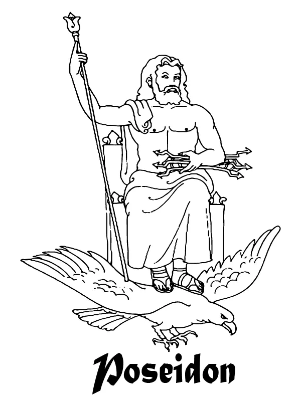 Beschreibung der Färbung : Druckbar herunterladen Griechischer Gott, der auf einem Vogel reitet Malvorlage