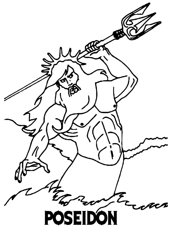 : Druckbar herunterladen Poseidon Wurf Dreizack Malvorlage