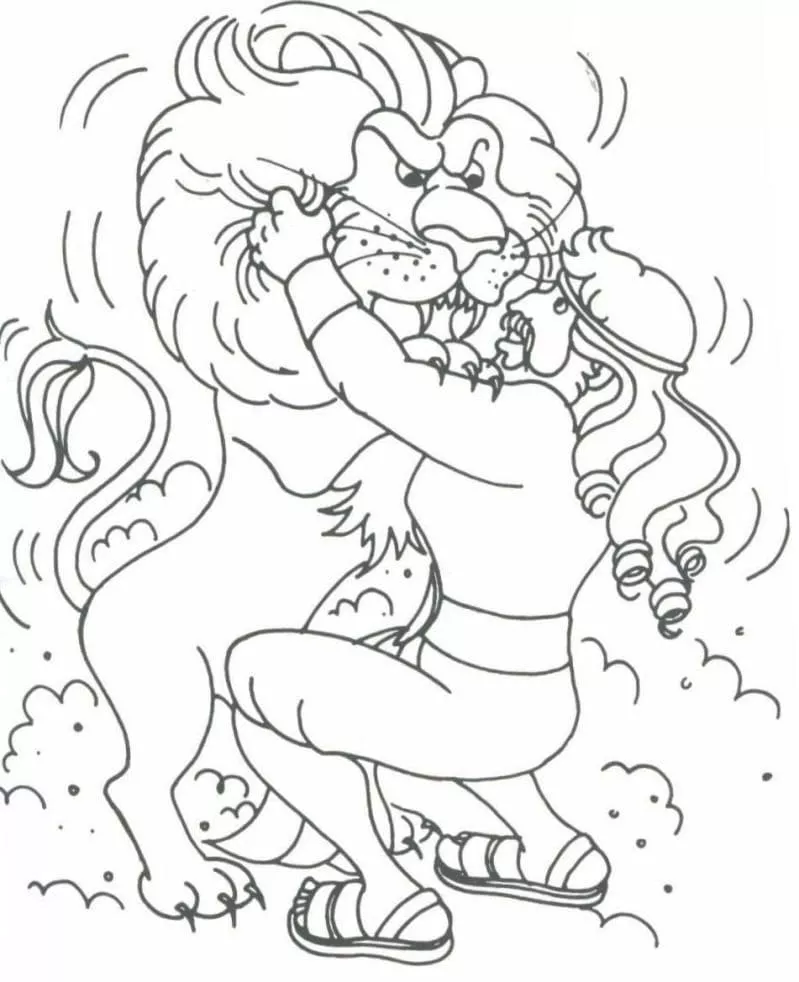 : Druckbar herunterladen Sampson und Lion Malvorlage