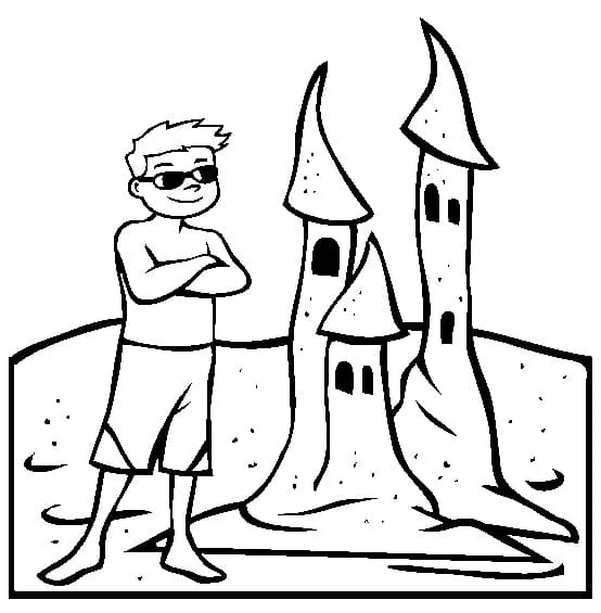 : Druckbar herunterladen Cool Boy und Sandcastle Malvorlage