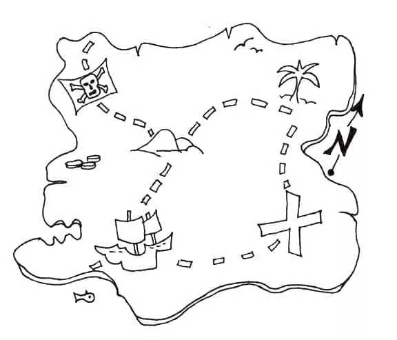: Druckbar herunterladen Kostenlose Schatzkarte zum Ausdrucken Malvorlage