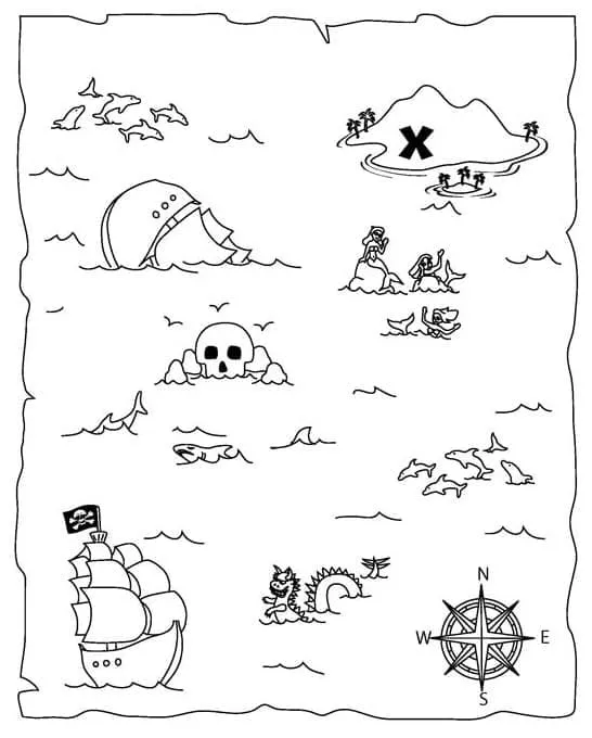 : Druckbar herunterladen Schatzkarte 12 Malvorlage