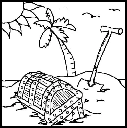 : Druckbar herunterladen Schatztruhe auf der Insel Malvorlage