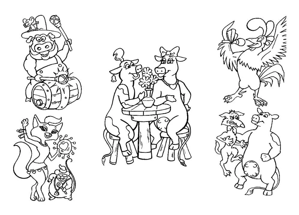 : Druckbar herunterladen Karikatur Scheunenhof Malvorlage