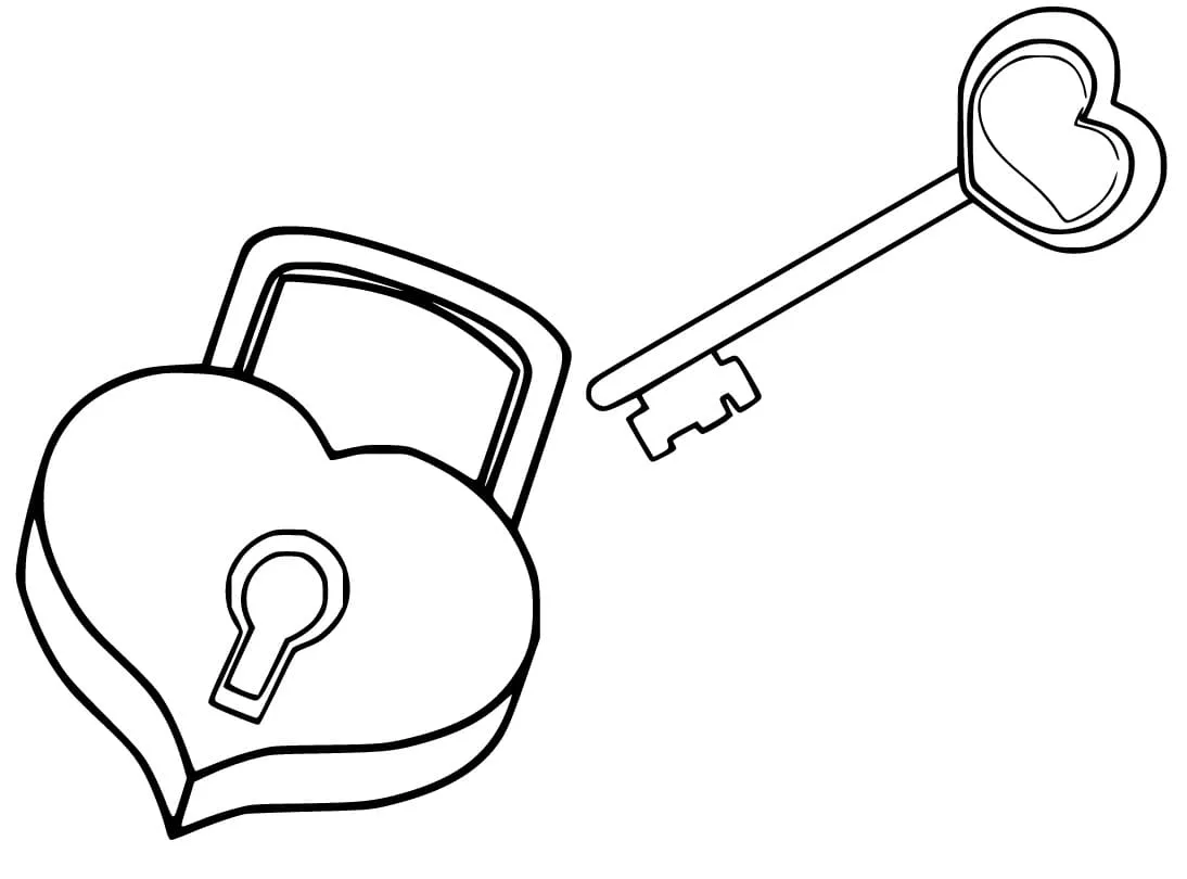 : Druckbar herunterladen Herzschloss und Schlüssel Malvorlage