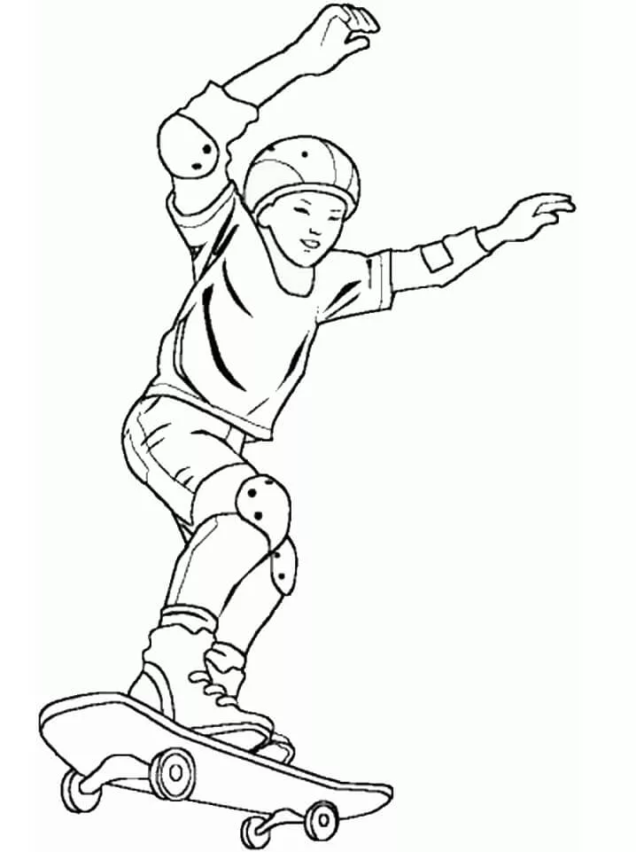 : Druckbar herunterladen Cooler Junge auf dem Skateboard Malvorlage