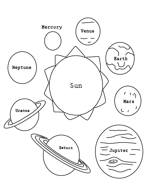 : Druckbar herunterladen Planeten um die Sonne Malvorlage