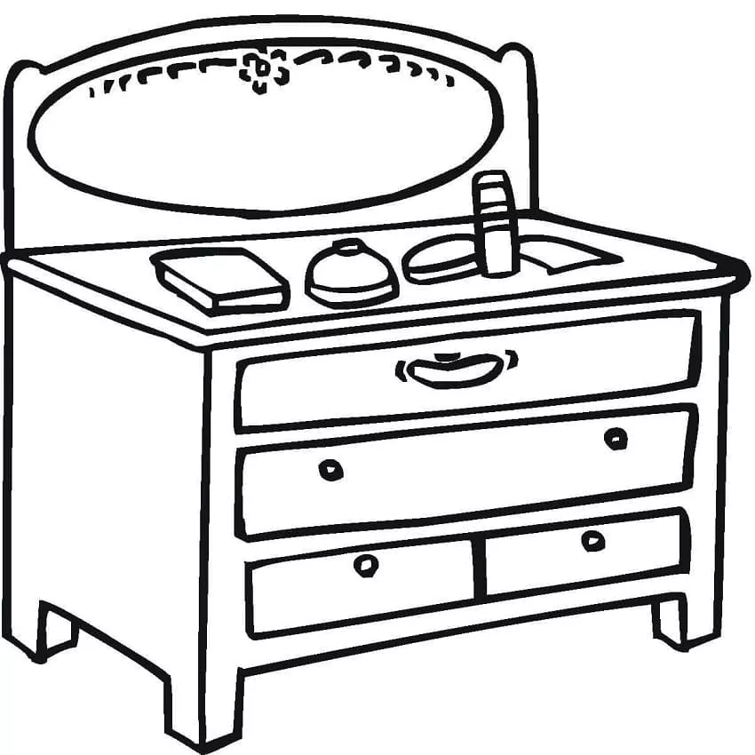 : Druckbar herunterladen Tisch mit Spiegel Malvorlage