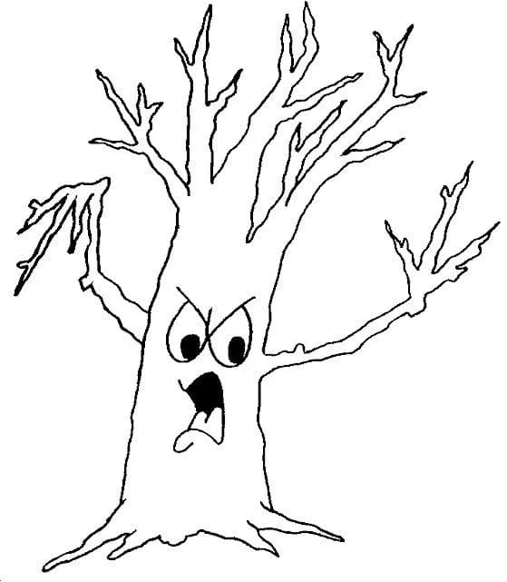 : Druckbar herunterladen Druckbarer Gruselbaum Malvorlage
