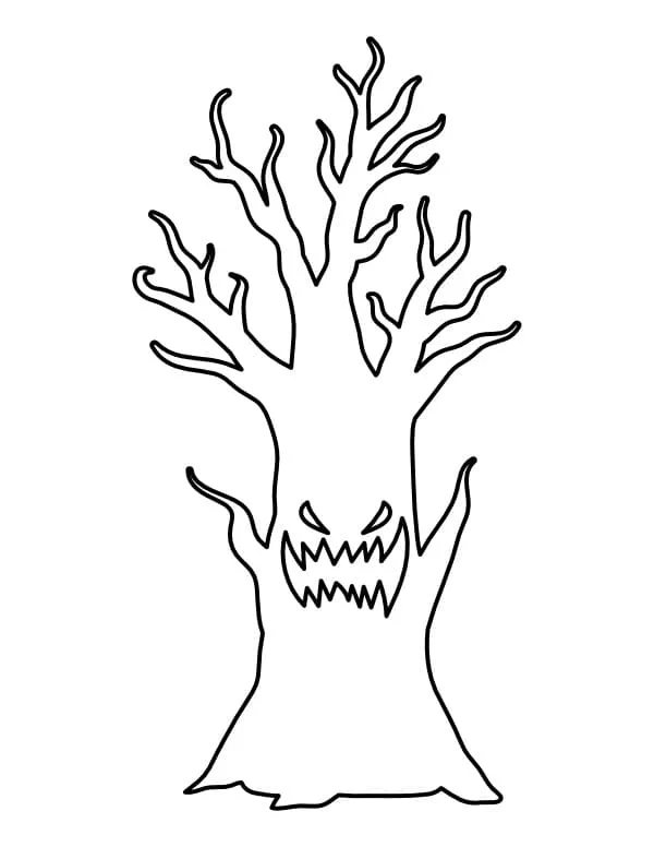 : Druckbar herunterladen Einfacher gruseliger Baum Malvorlage