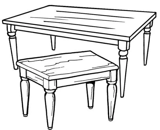 : Druckbar herunterladen Holztische Malvorlage